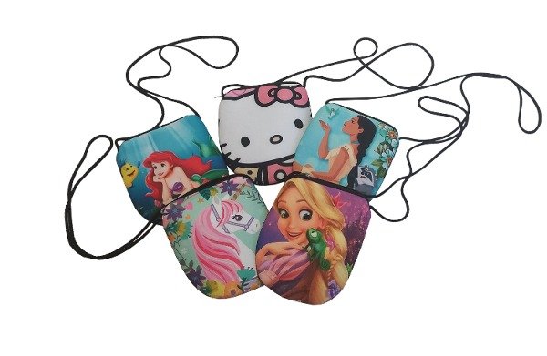 Mini bandolera infantil confeccionada en símil neopren sublimado.