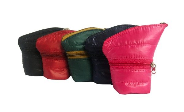 Cierre relámpago en la boca y en el bolsillo.