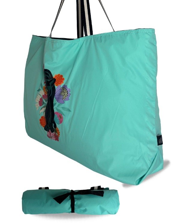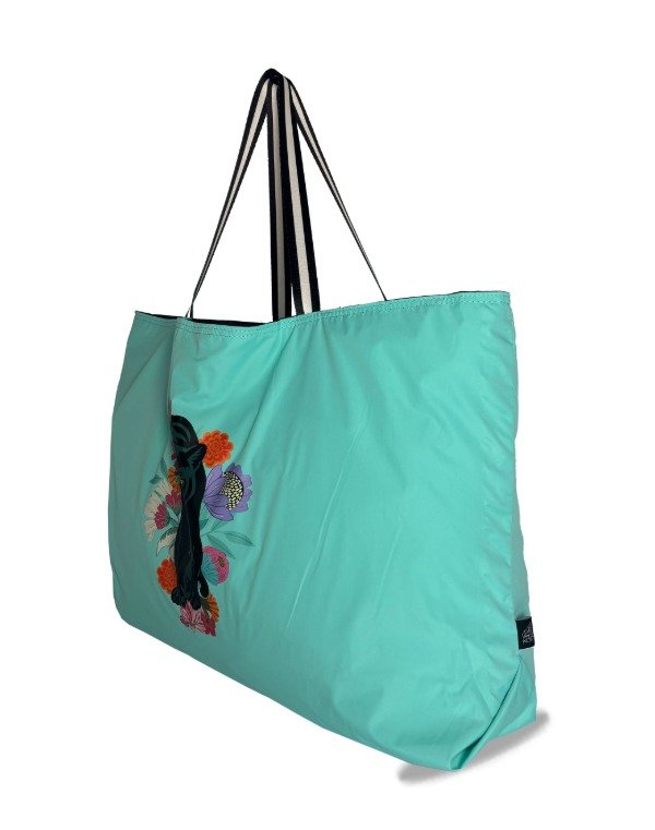 Maxi tote, confeccionado en sire con estampa y sylver impermeable.