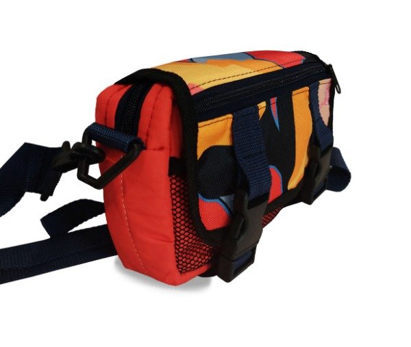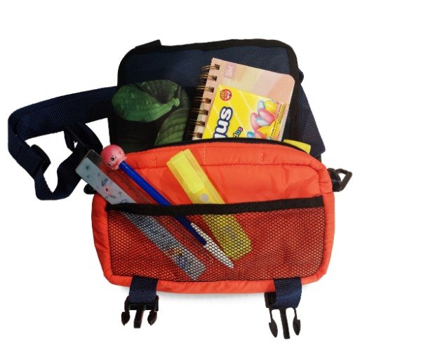 Bolsillo externo de red y bolsillo con cierre relámpago en la tapa.