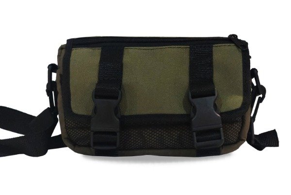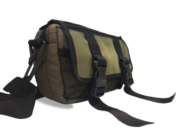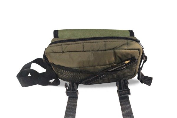 Bolsillo externo de red y bolsillo con cierre relámpago en la tapa.