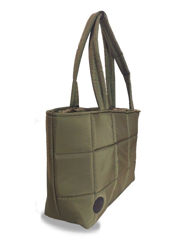 Confeccionado en material de nylon matelaseado y forrado en sylver impermeable por dentro.