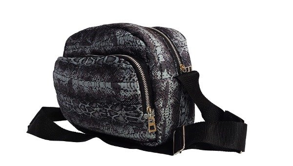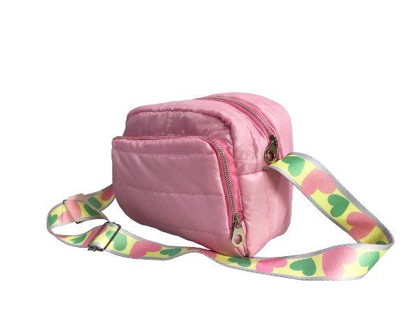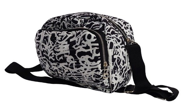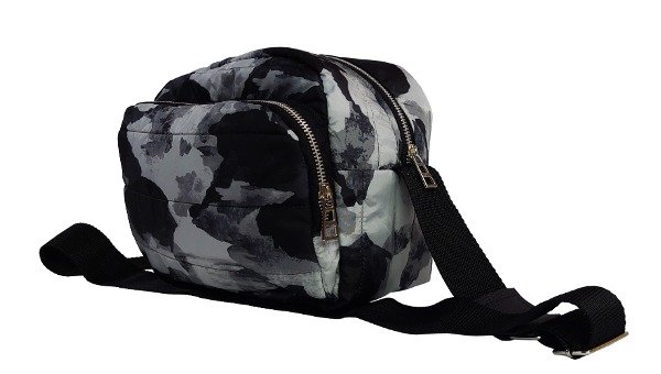 Bandolera confeccionada en sire estampado matelasseado y cordura impermeable.