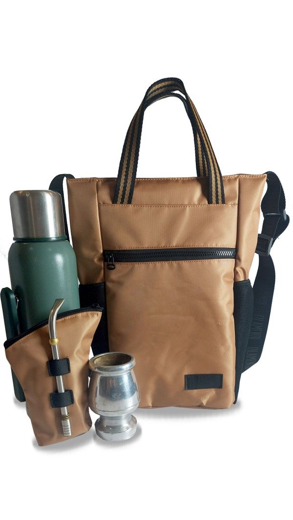 Cuenta con elástico sujeta termo en su interior.
