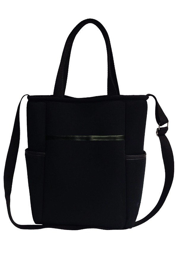 Confeccionada en símil neopren negro.