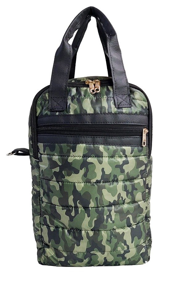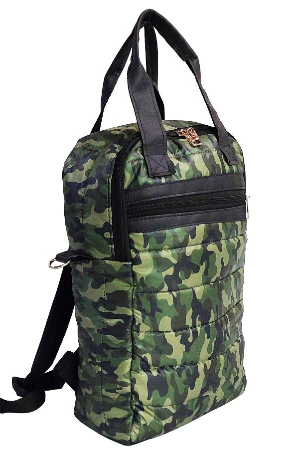 Confeccionada en sire camuflado, cordura importada y PU.