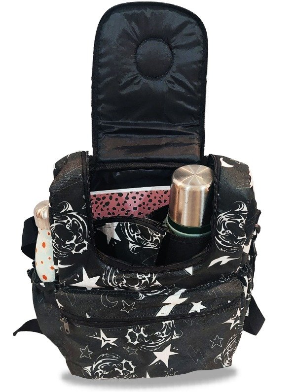 Cuenta con 3 bolsillos externos, uno con cierre relámpago.