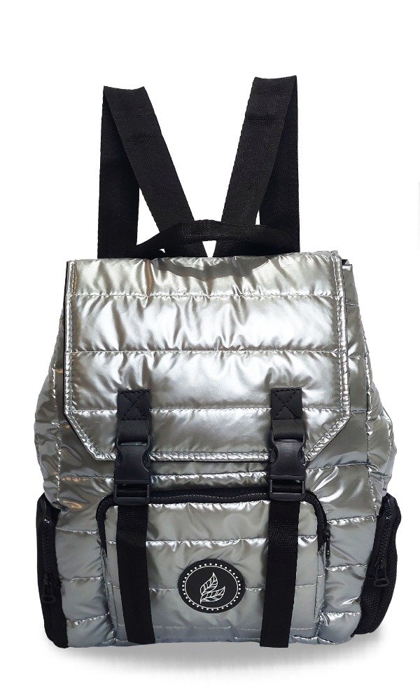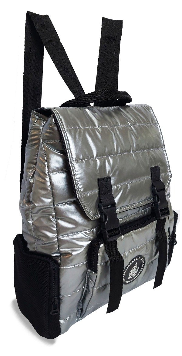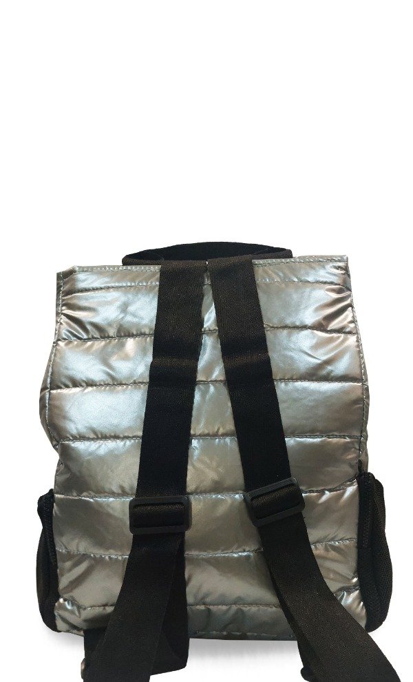 Mochila confeccionada en sire matelasseado fantasía.