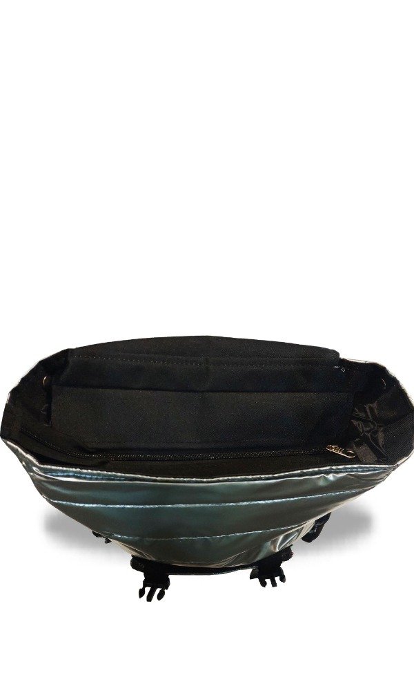 Cuenta con botones presión en los laterales para modificar su capacidad.