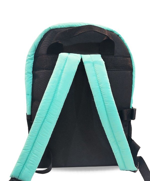 Cuenta con un bolsillo frontal con cierre diente de perro y 2 bolsillos laterales con broches tip top para sujetar botellas.