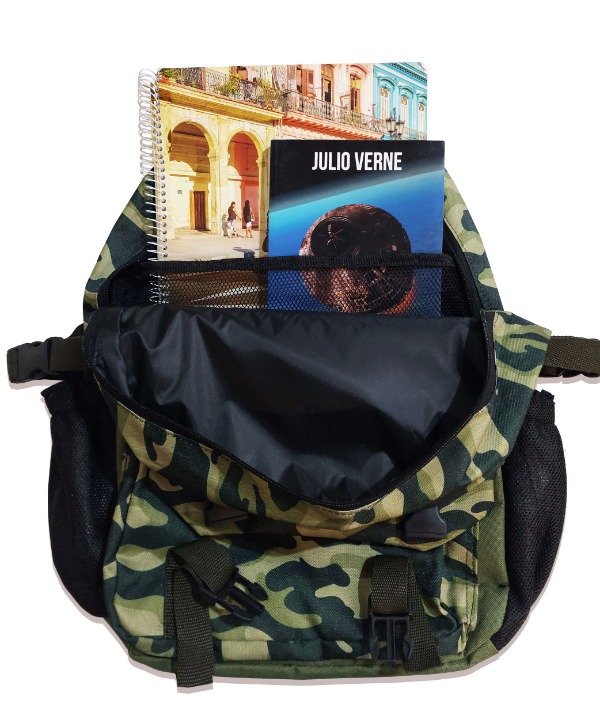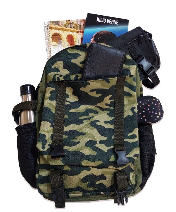 Confeccionada en cordura estampada.