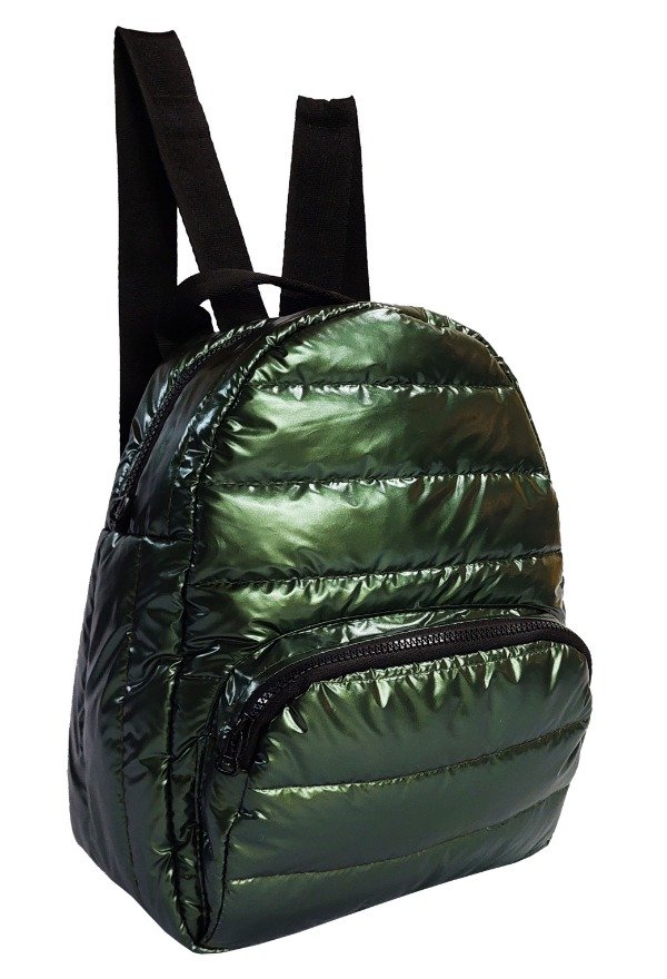 Mochila confeccionada en sire metalizado y PU.