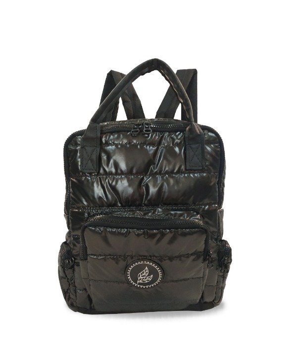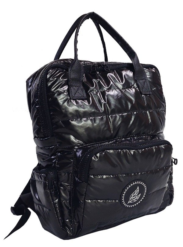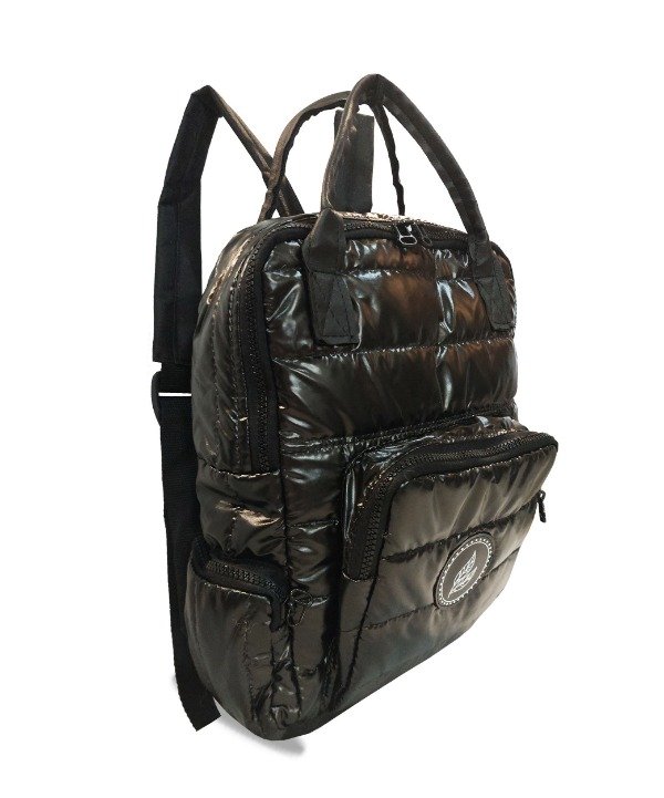 Mochila de capacidad mediana confeccionada en Sire matelasseado y cordura importada.