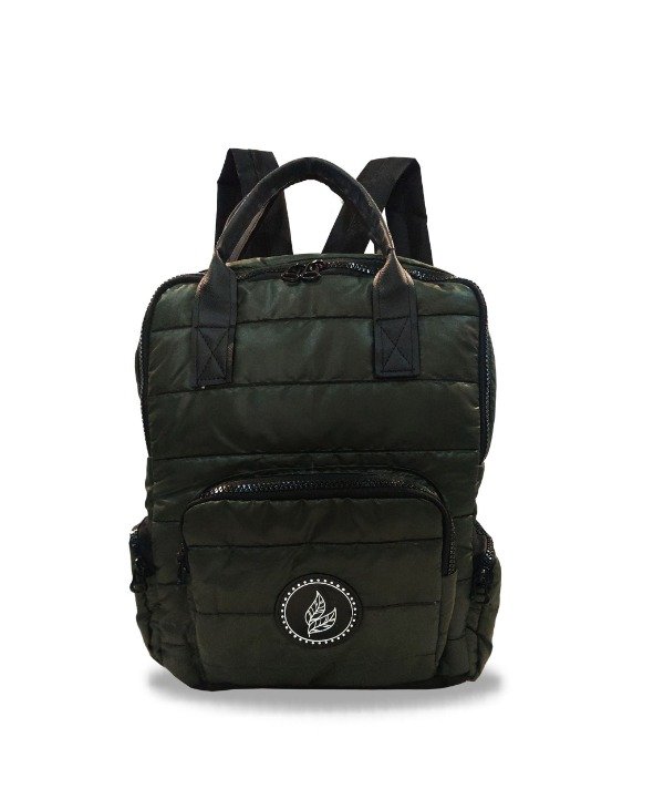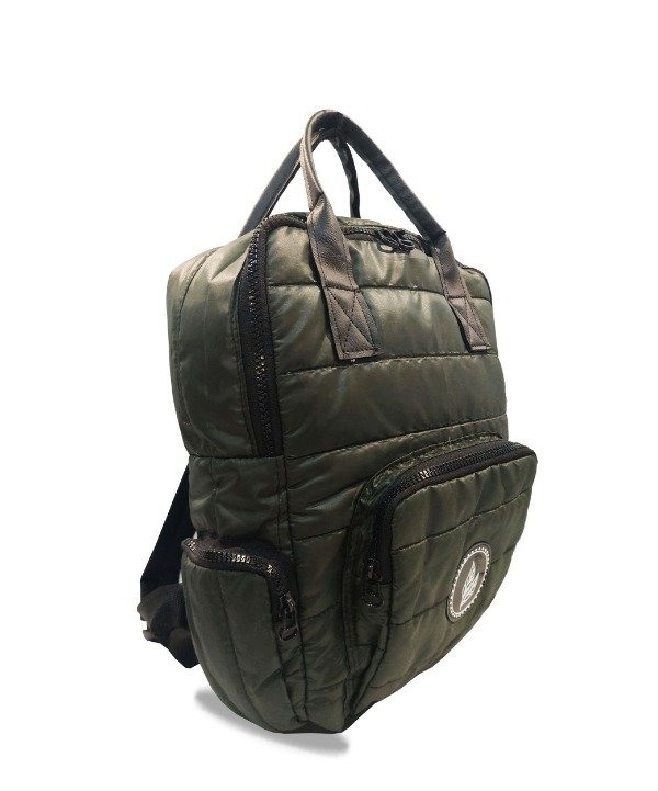 Mochila de capacidad mediana confeccionada en Sire matelasseado y cordura importada.