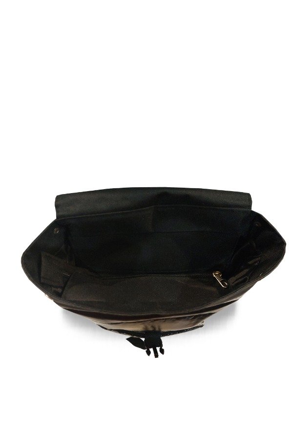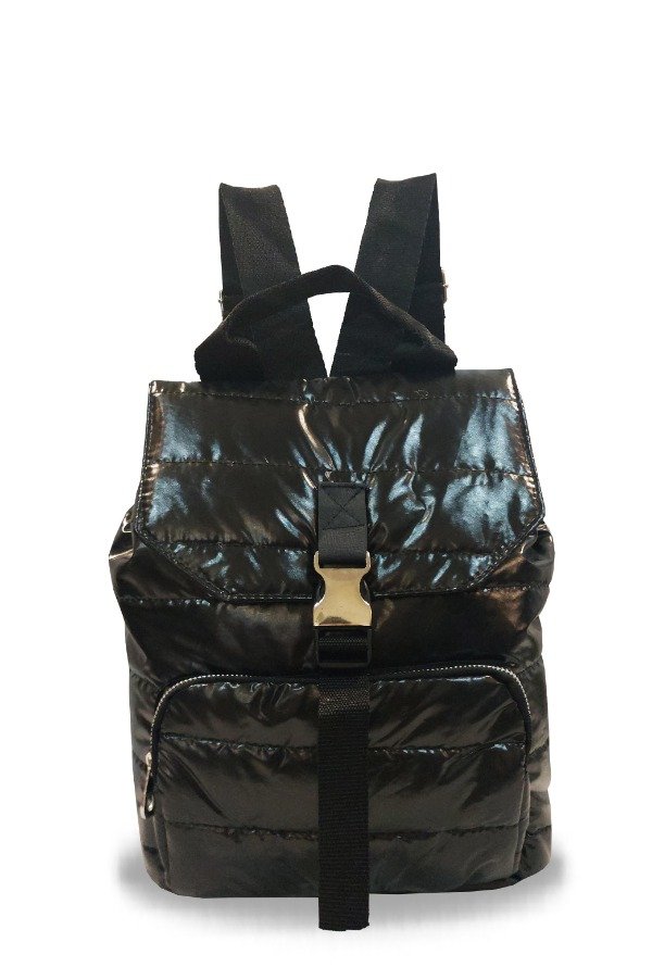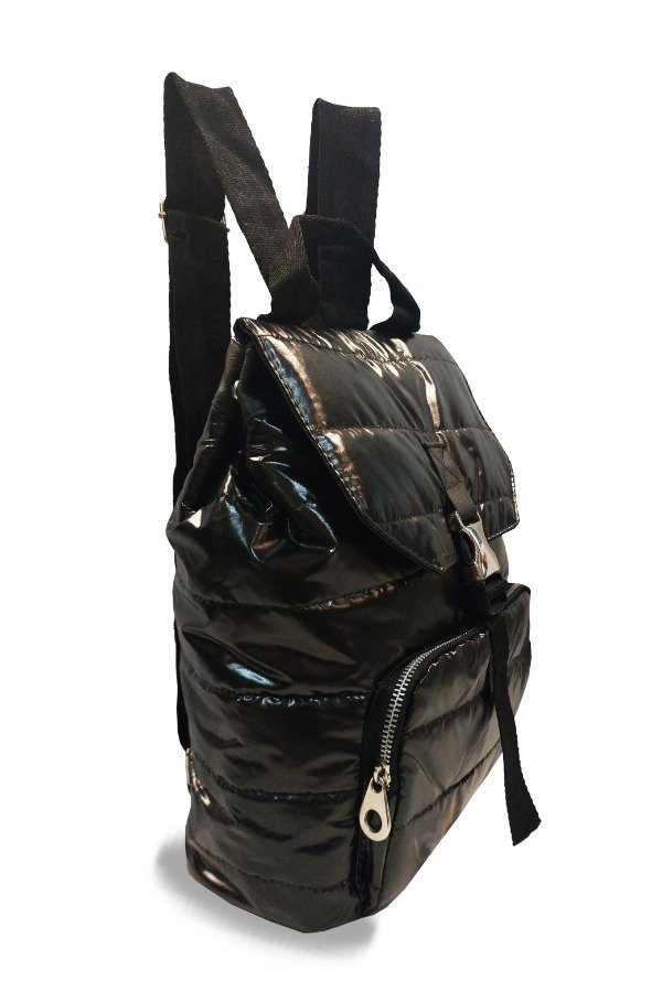 Cierre relámpago en la boca y botones para reducir su capacidad.