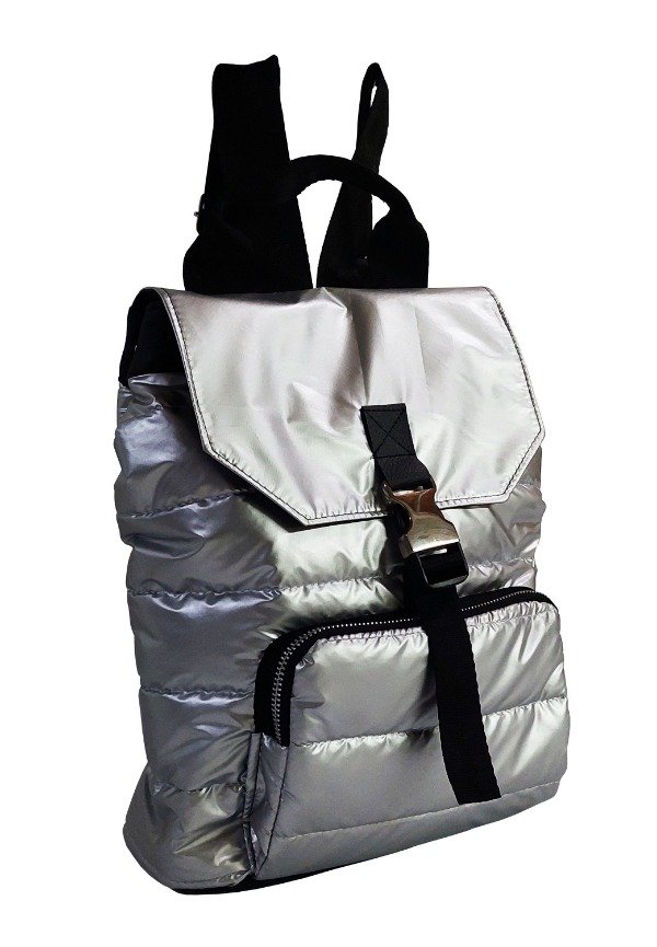 Cierre relámpago en la boca y botones para reducir su capacidad.