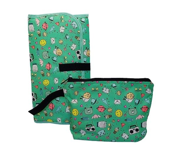 Cambiador acolchado y necessaire confeccionados en cordura estampada.